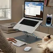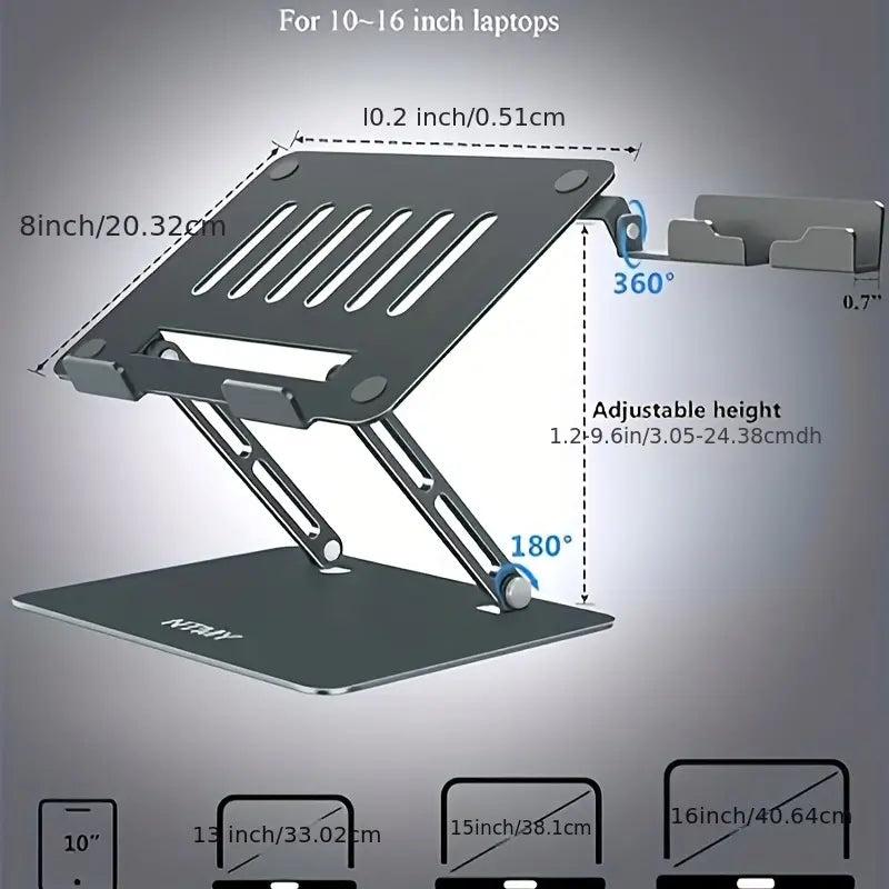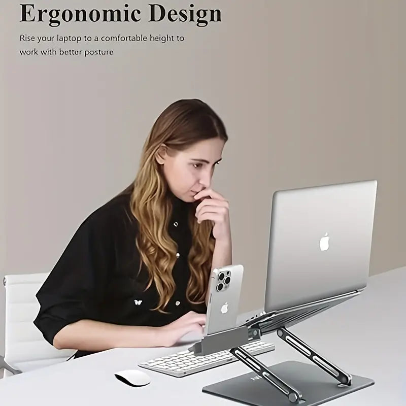 Elevate Your Laptop Experience with our Portable Laptop Riser. It's Adjustable, Ergonomic Design, including a phone stand, provides Comfort and Convenience while working. And, its Foldable and Portable Sleek Design allows for Easy Transport.  Great Gift Idea!